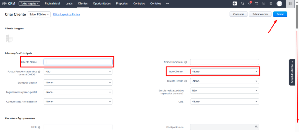 Role a barra para baixo para acessar todos os campos disponíveis para cadastro.